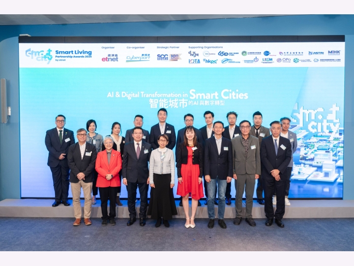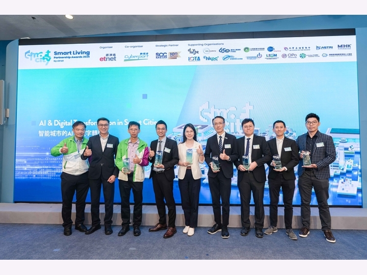 In the "Smart Living Partnership Awards 2025" co-organised by ET Net and Cyberport, LSCM received various awards in different categories with its innovative technologies and the ones developed in collaboration with the government, industry and universities. The awards highlighted the Centre's significant contribution to the research and development of innovation and technology, as well as the Smart City development in Hong Kong. The LSCM team will continue to utilise our expertise to develop more cutting-edge technologies for the industry and the community.