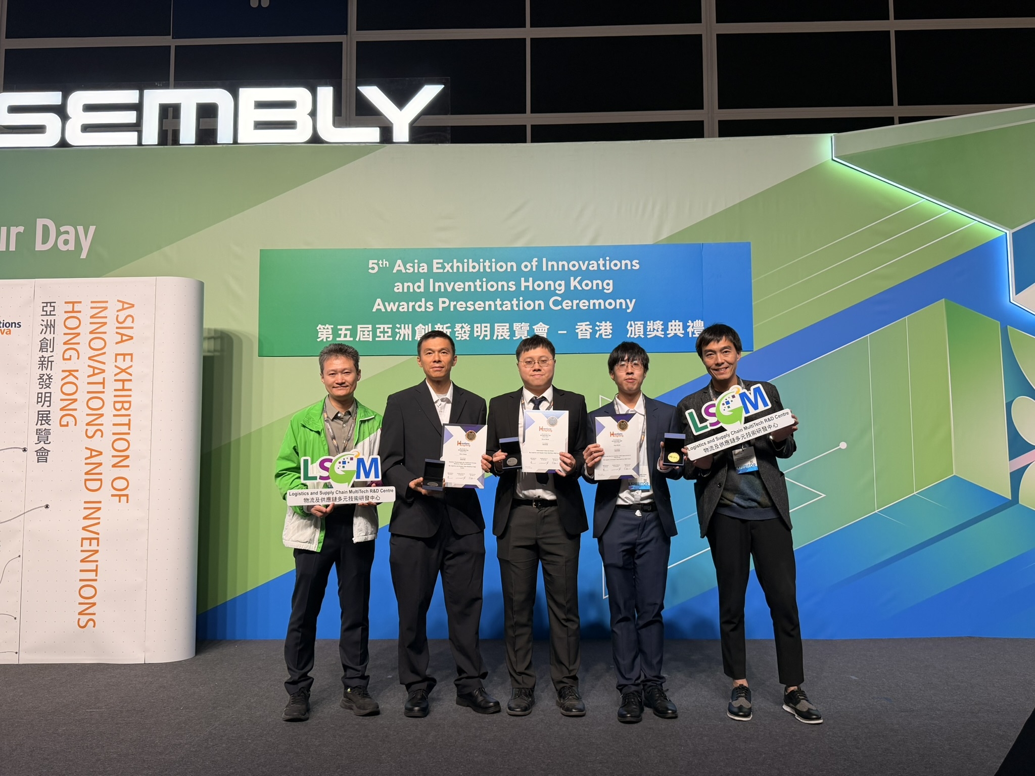 At the 5th Asia Exhibition of Innovations and Inventions Hong Kong organised by the Hong Kong Exporters’ Association (HKEA) and Palexpo, Geneva, LSCM garnered three awards at the event with the Centre’s smart transportation, smart city and robotics technologies.