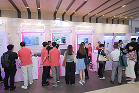 | Ms Mable CHAN, Secretary for Transport and Logistics, The Government of the HKSAR, Prof Frederick MA, Chairman of HKTDC and Ms Sophia CHONG, Executive Director of HKTDC, visited the LSCM’s booth to learn about the logistics technologies developed by LSCM. |