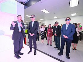 On 8 August 2023, Mr Leung Chun-Ying, Vice Chairperson of the Chinese People's Political Consultative Conference, Mr Raymond Yip, Chief Liaison Officer, Guangzhou Nansha Service Centre in Hong Kong, and a group of guests visited LSCM to explore the latest R&D projects and initiatives of LSCM.