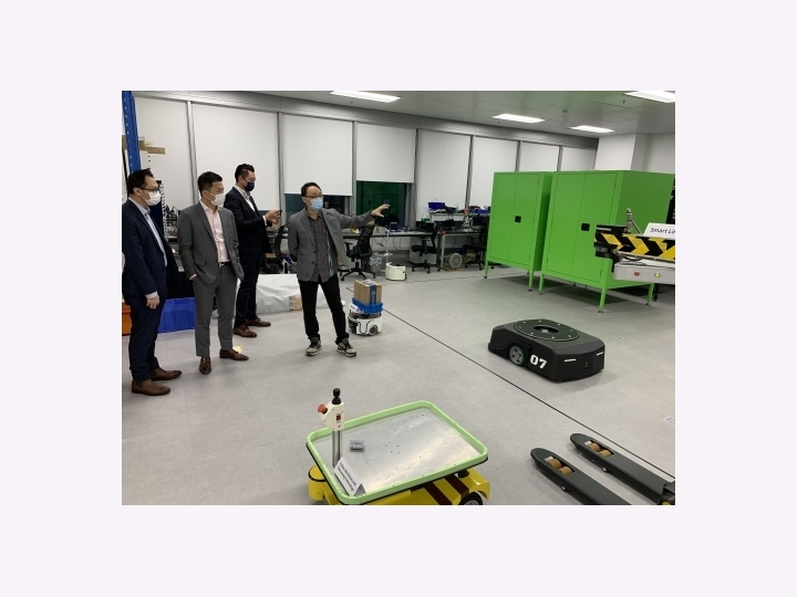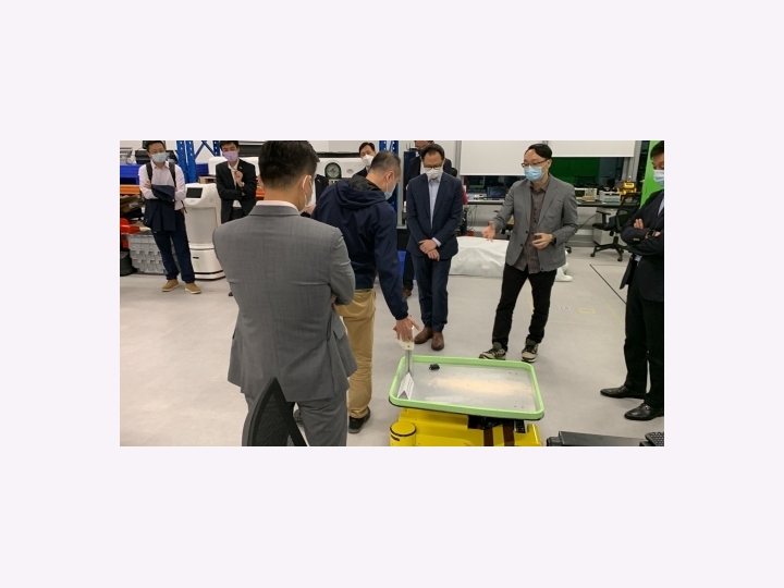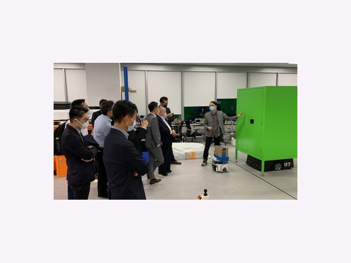 香港工業總會會員在2021年11月16日到訪LSCM科學園辦公室。LSCM向嘉賓們介紹及示範了不同的物流及機械技術,包括「運送機械人」、VR Cave、「5G遙控倉庫電動堆高車」、「自動隨行機械人」及「自動導航搬運車」等。