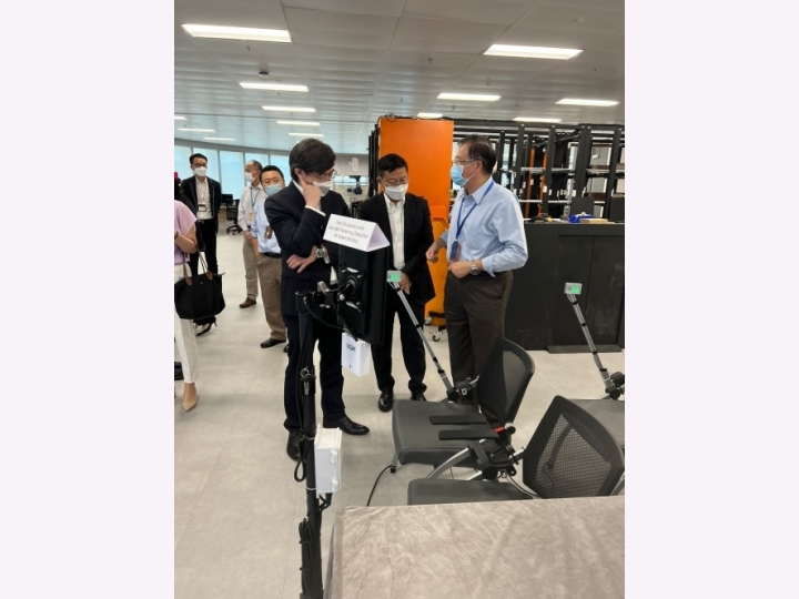 中國移動香港代表於2022年6月23日到訪LSCM位於香港科學園的辦公室,了解LSCM的研發技術。LSCM團隊為嘉賓們介紹及示範了中心研發的技術,包括「運送機械人」、「5G遙控倉庫電動堆高車」、「小巴座位及安全帶佩戴狀況偵測系統」、「幫助中醫院配藥和分發物流的智能協助系統的深度視覺自動化和配送機器人的技術」及VR Cave等。