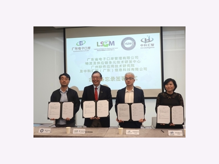 LSCM剛與廣東省電子口岸管理有限公司、廣州軟件應用技術研究院及中科匯智(廣東)信息科技有限公司共同簽署合作備忘錄,就研發物流和供應鏈平台技術上加強合作,以促進全球貿易和便利通關。