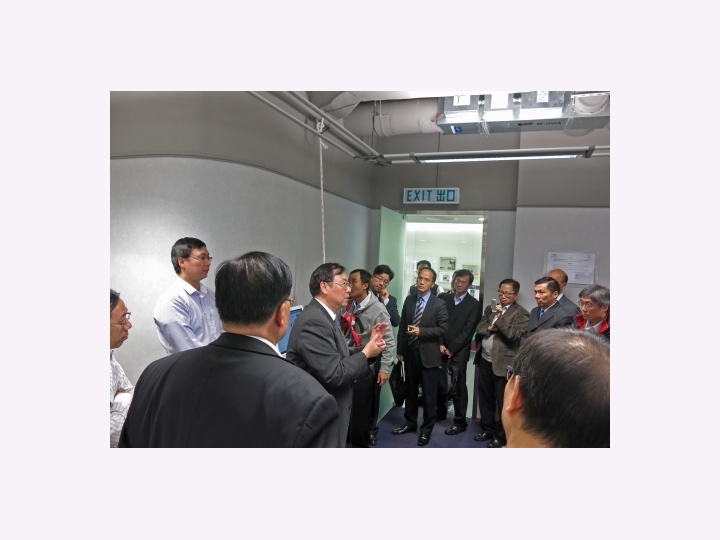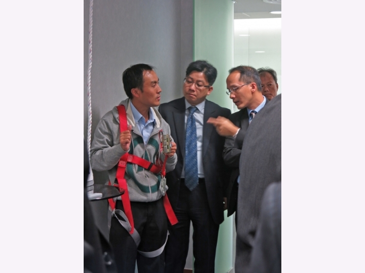 LSCM研發中心致力研發施工安全技術,以提高安全性,避免在建築工地發生意外。升降機槽工作的工地安全專責小組主席馮宜萱女士及屋宇署署長區載佳先生, JP 聯同建造業議會工地安全委員會委員於12月4日參觀LSCM研發中心,進一步了解應用於建造業的最新技術