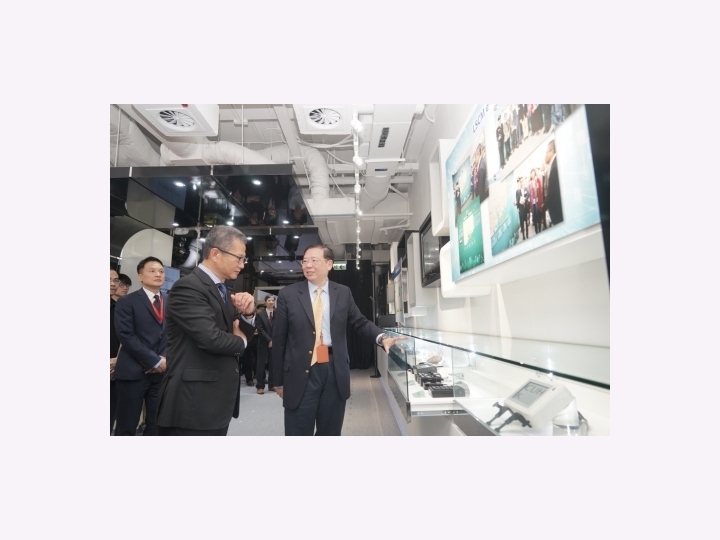 財政司司長陳茂波親臨LSCM研發中心到訪參觀! 在創新科技署署長蔡淑嫻女士陪同下,LSCM行政總裁黃廣揚及其團隊、聯同合作夥伴,向財政司司長介紹及示範本中心研發的技術。